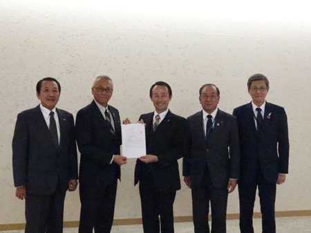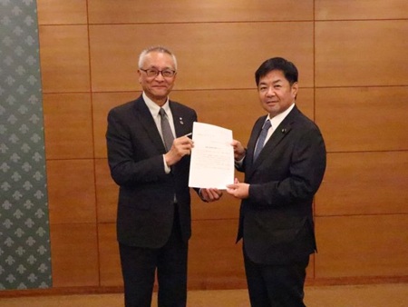 懇談会では、先の定期総会において採択された決議及び令和8年度国の予算及び施策に関する要望書を手交し、要請が行われました。